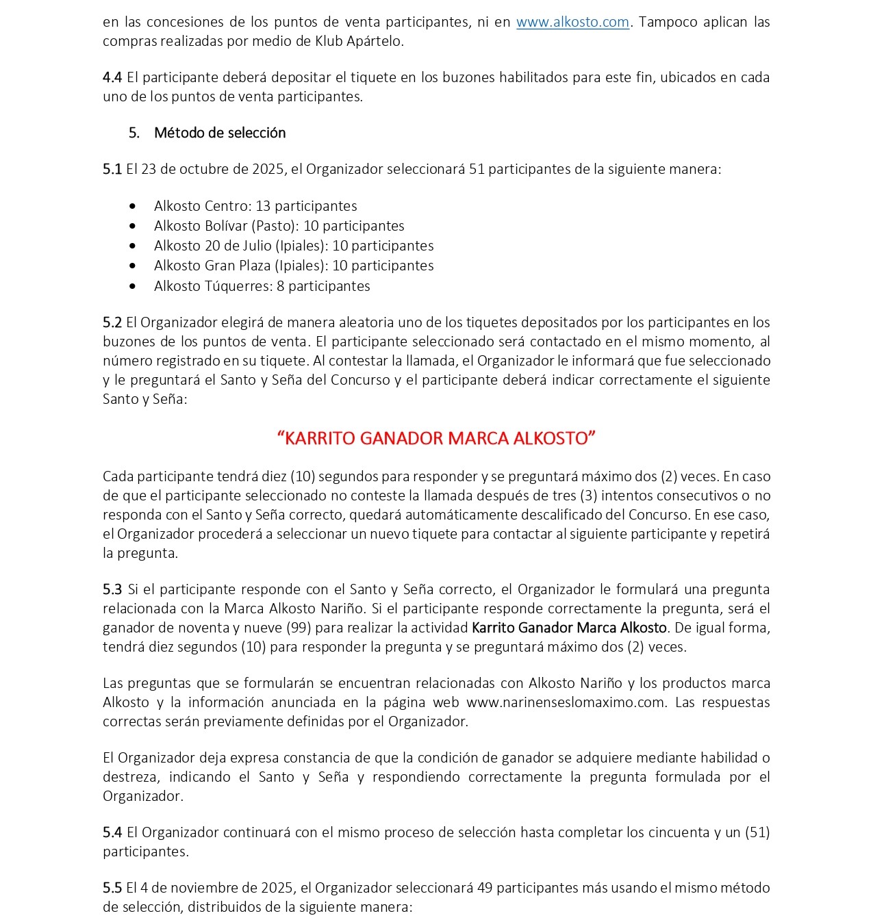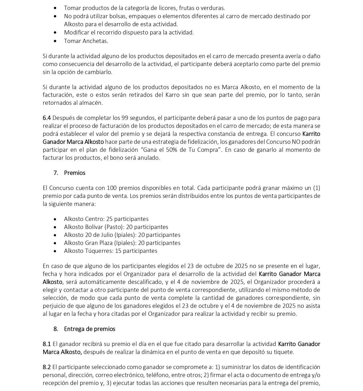 Términos y condiciones Karrito Ganador Marca Alkosto